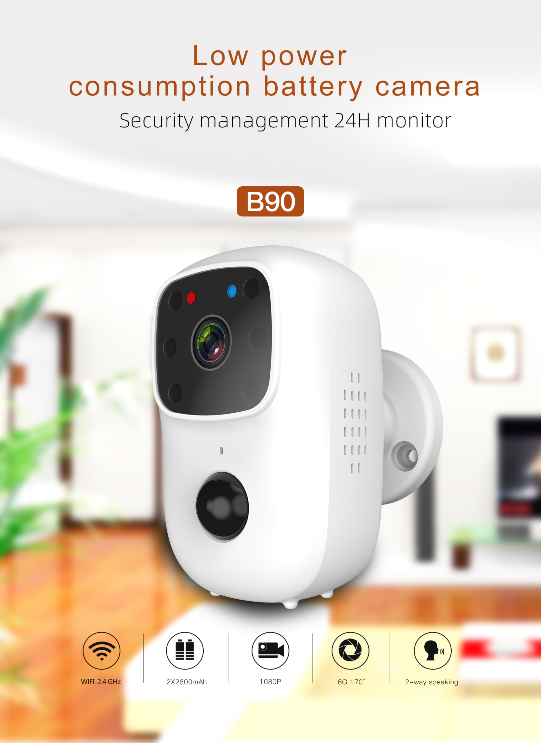 Anytek B90 Tuya Smart 1080P Camera IP WiFi PIR Stockage dans le cloud basse consommation 170 e Large gamme Vision nocturne etanche Video Talk-back Surveillance de sonnette Moniteur sans fil – pas de batterie