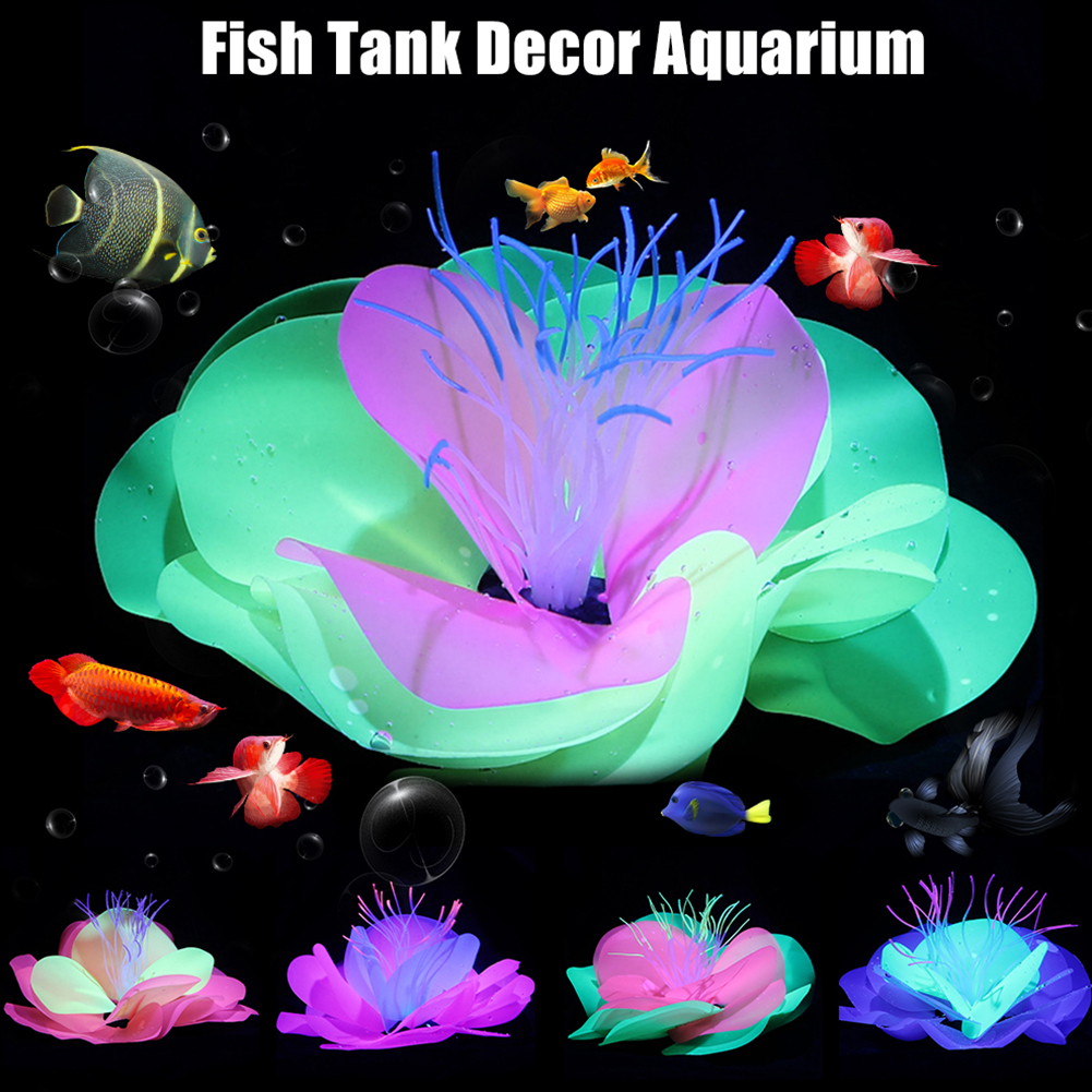 Aquarium Artificial Simulation Soft Silicone Fluorescent Flower Decoration Orange