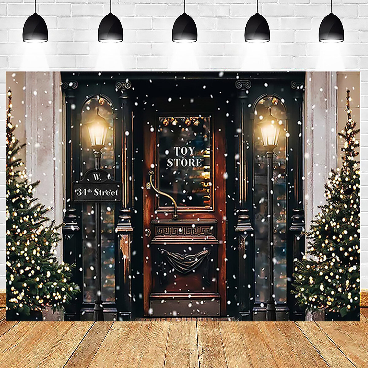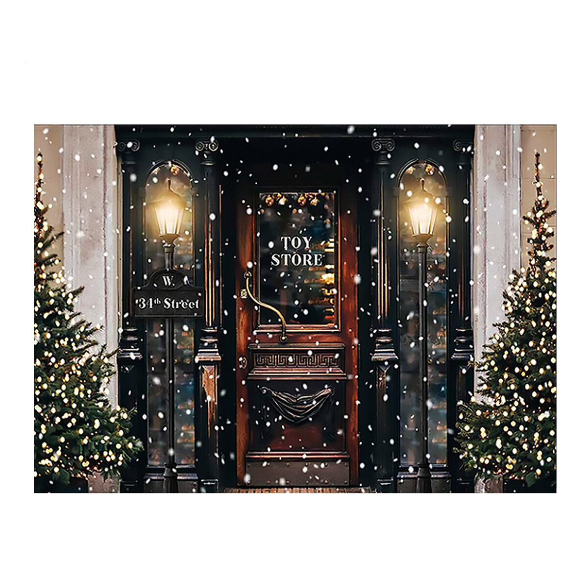 Arbre de noel photographie decors porte enneigee boutique fenetre fond tissu pour Studio Photo toile de fond accessoire – 2,7 x 1,8 m
