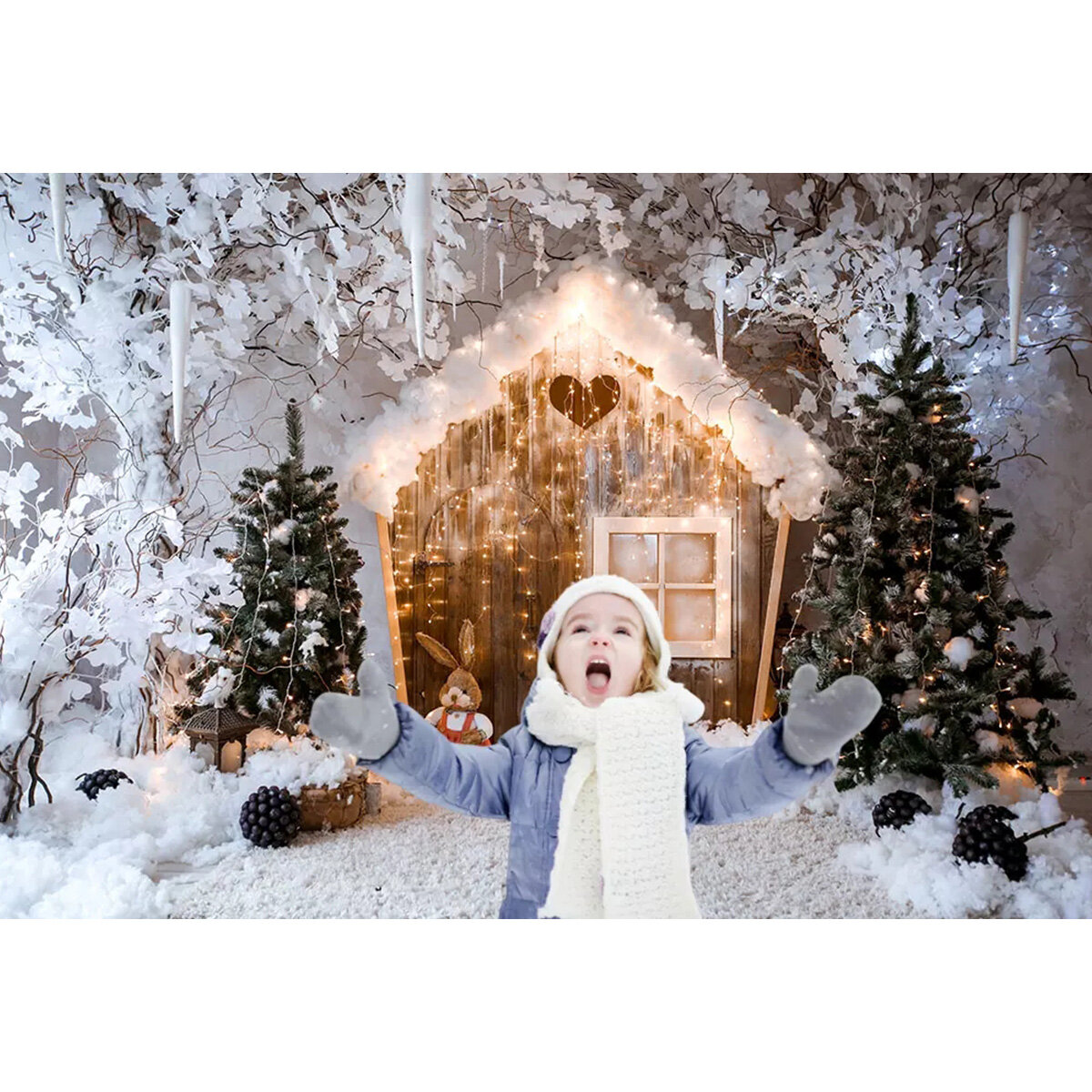 Arbre de noel photographie toile de fond maison en bois flocon de neige hiver Photo fond tissu decoration accessoires – 1,5 x 0,9 m