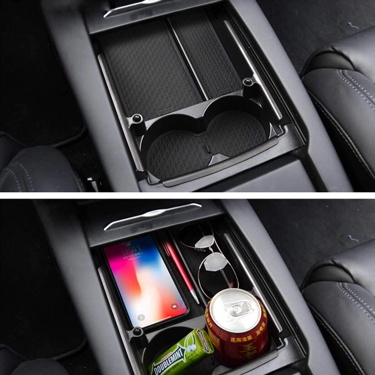 Armrest Storage Box Central Console Card Phone Holder Case For Tesla Model X S