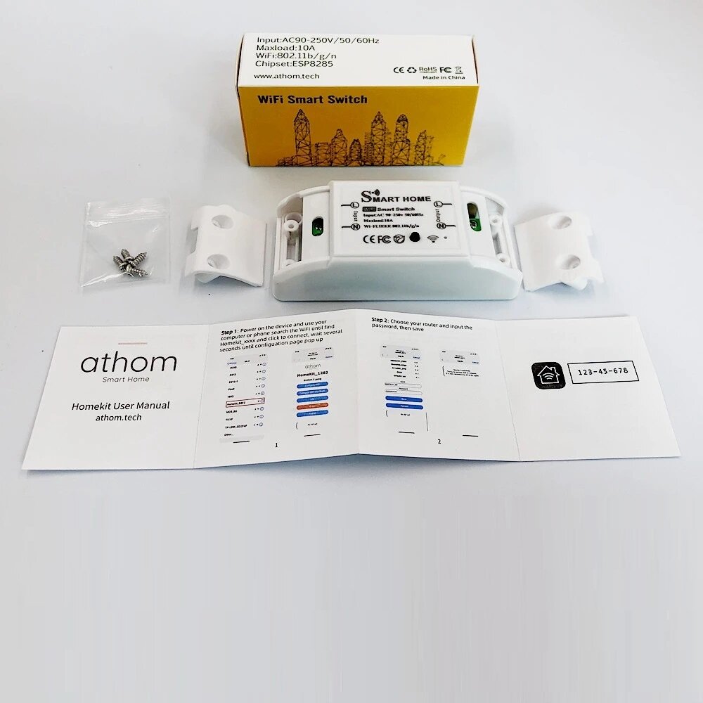 ATHOM Homekit 10A Commutateur de relais intelligent WiFi fonctionne avec Home Assistant