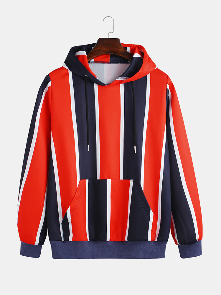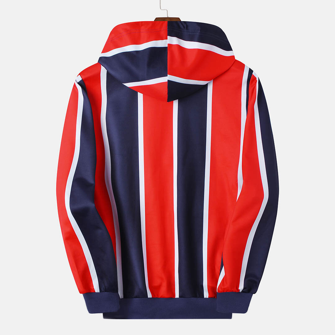 Item Type: Sweatshirt Clothing Length: RegularGender: Men Thickness: RegularStyle: Casual,Fashion Fit Type: FitMaterial:100% Polyester Decoration: PatternPattern Type: Stripe Collar: Hooded Season: Spring,Autumn,WinterClosure Type: Overhead Color: RedSleeve Length: Long SleeveCuff Type: Straight Sleeves Occasion: Leisure,Work,Daylife Package includes