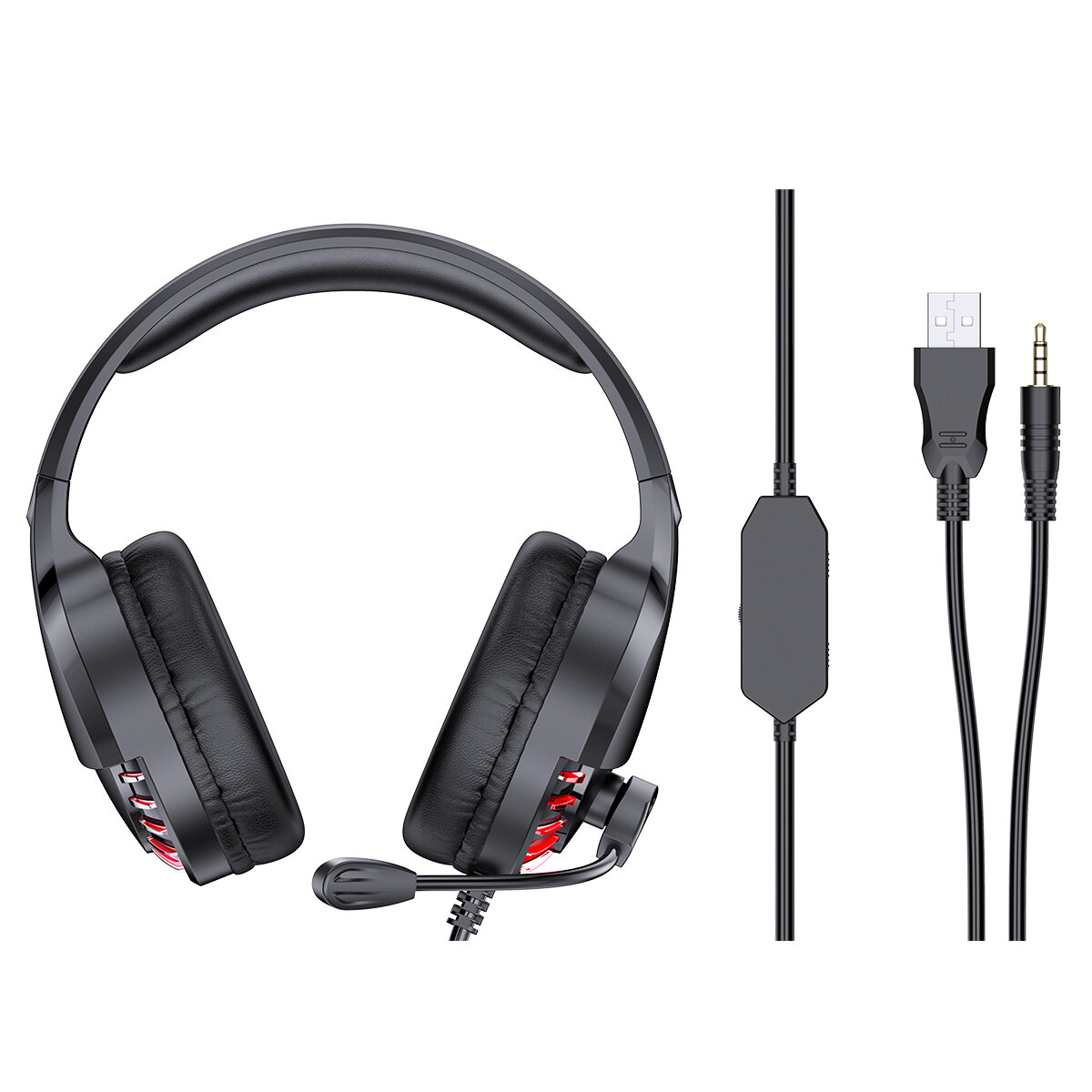 Features:Surround Stereo Powerful Tone QualityBy virtue of the open sound field and precise positioning via sound, gives user a more stereo experience in listening music. Cool Mood Light Brimming E-Sports SenseCreate a tense, passionate and exciting fighting atmosphere in the dark battlefiled.Extended Microphone Bendable & Rotatable360° free rotation, more accurate and clearer voice call via the high-sensitivity microphone with noise reduction.Memory Foam Beam Lightweight DesignAs Light as 300g, no sense of weight or pressure, suitable for longstanding wear.
