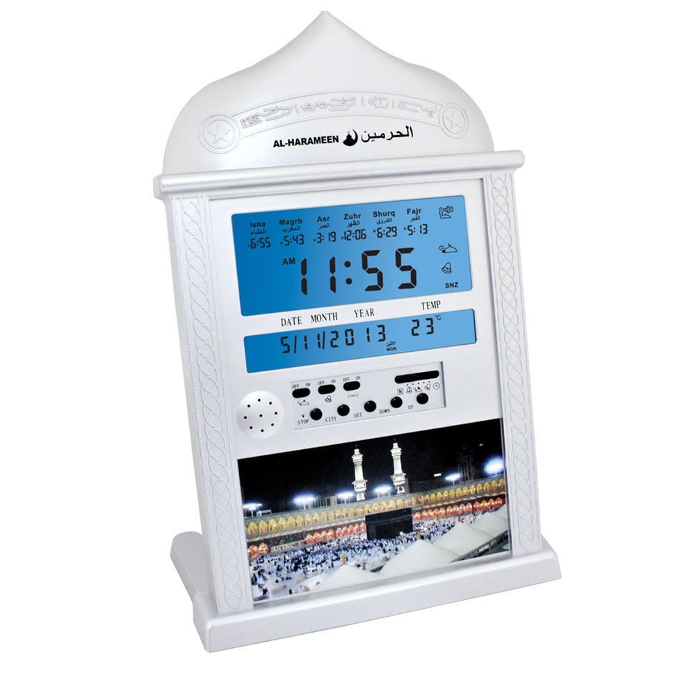 Azan Calendar Muslim Prayer Wall Clock Alarm with LCD Display Home Decor(No Battery) white