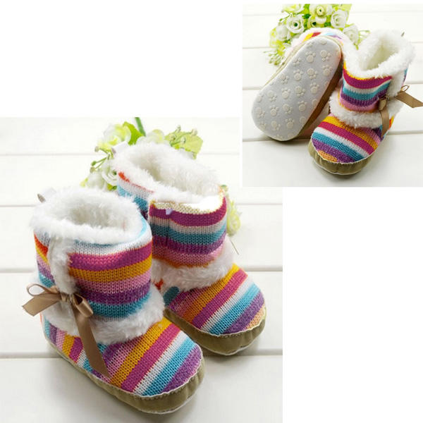 Baby Girls Toddler Velvet Rainbow Soft Sole Boots Shoes – 0-3M