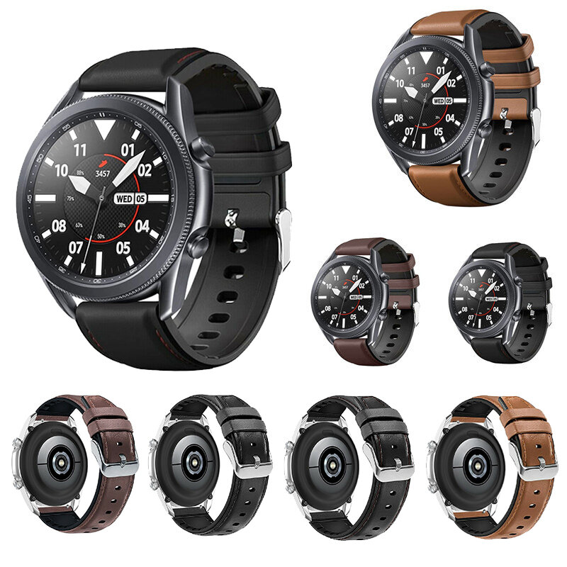 Bakeey 20 / 22mm largeur universel decontracte en cuir veritable + montre en Silicone Bande remplacement du bracelet pour Samsung montre Galaxy 3 41 / 45mm – Noir 22mm