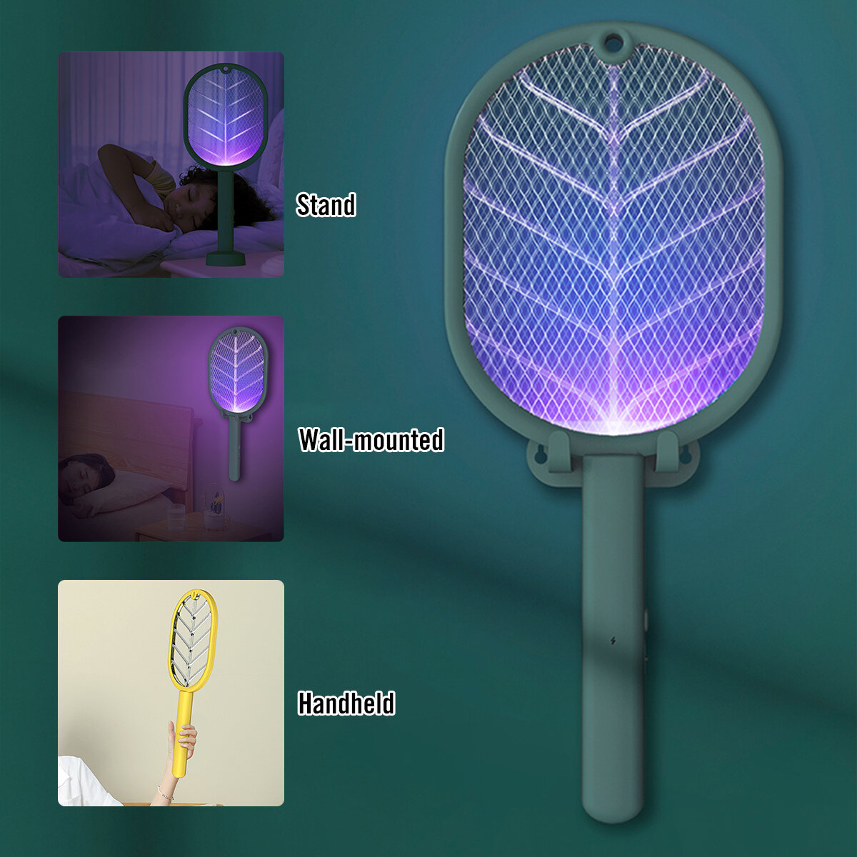 1. Unique dual-mode design: Manual mosquito killer mode: when you pick the Swatter up, it is an electric mosquito swatter, which can actively attack and kill mosquitoes;