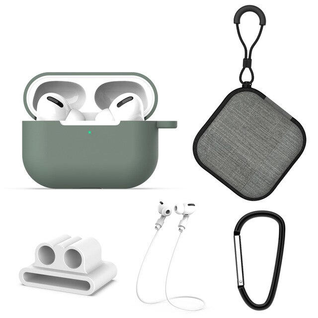 Bakeey 5 en 1 etui de rangement pour ecouteurs antichoc en silicone antichoc avec sangle crochet porte-cles sac de rangement anti-perte de sangle pour Apple Airpods Pro 2019 – Vert