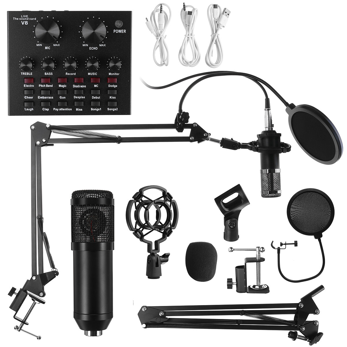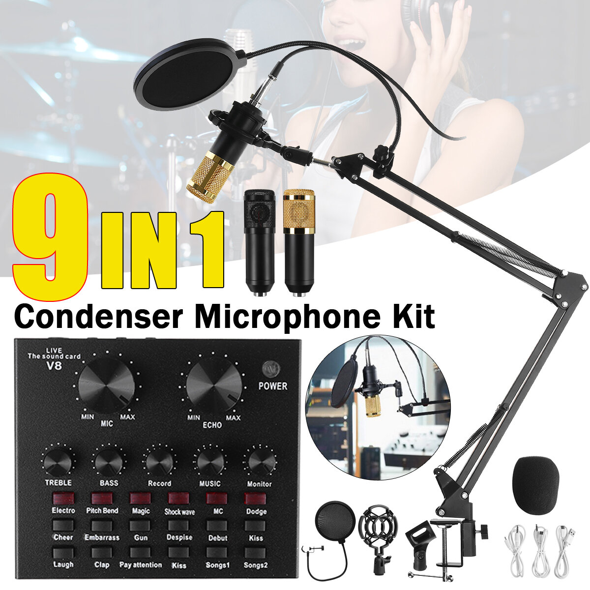 Bakeey 9in1 Kit de Microphone e condensateur en direct carte son support de Microphone support de montage antichoc ensemble de micro professionnel pour la diffusion chant K chansons – Noir