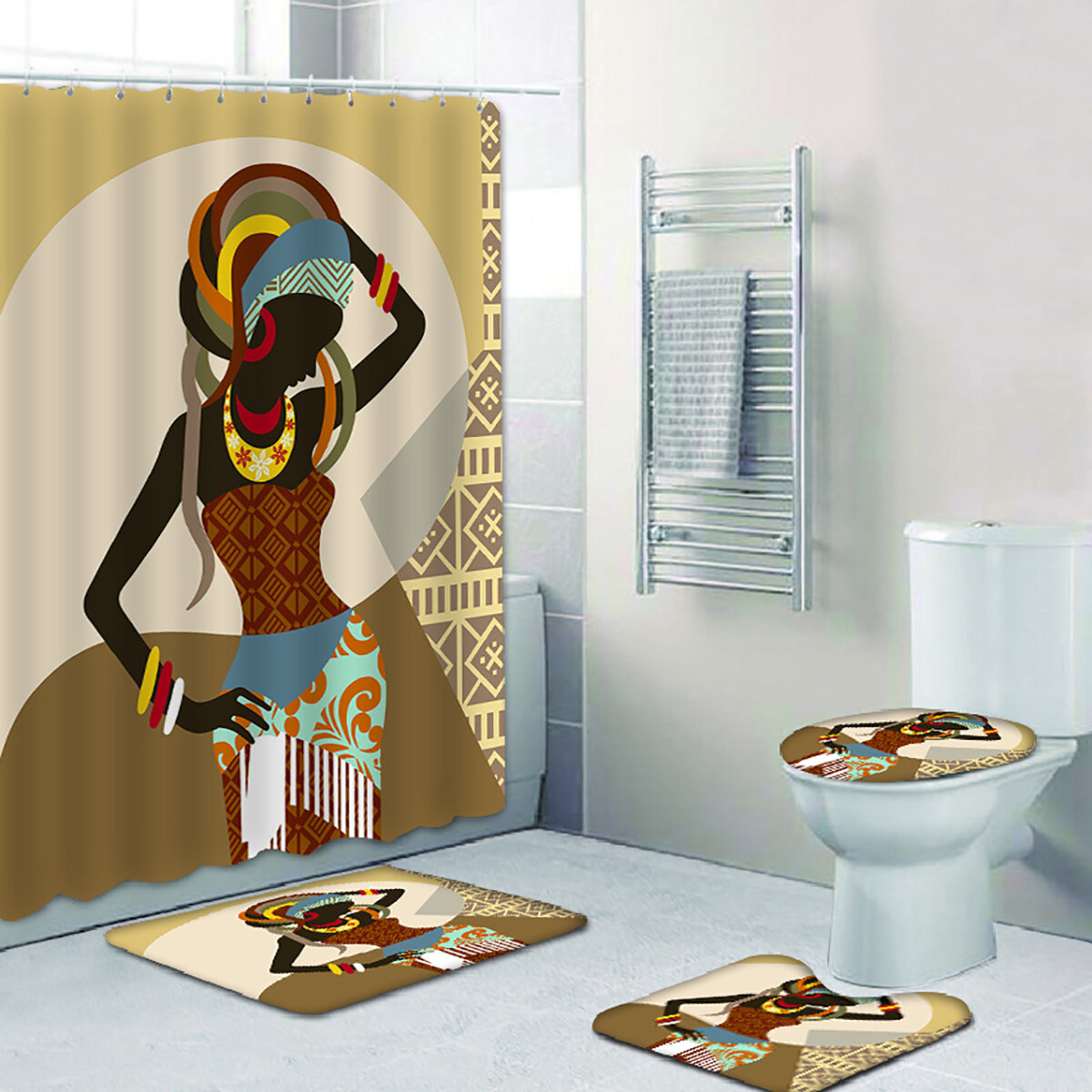 Bakeey African Girl Shower Curtain With Bath Mats Rugs Toilet Cover Mats For Home – 3Pcs Set
