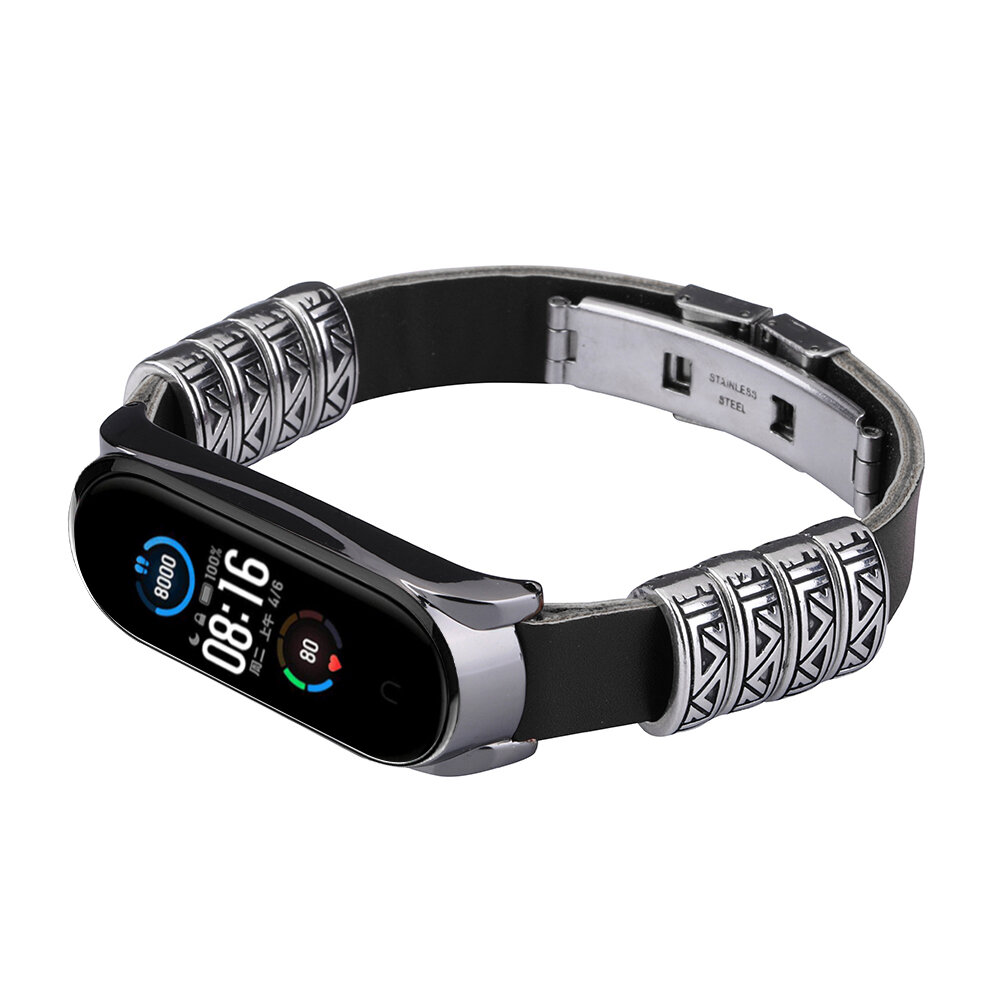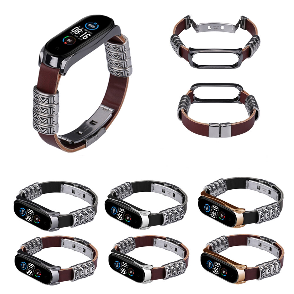 Bakeey coque en metal retro quatre anneaux en relief boucle papillon bracelet de remplacement montre intelligente Bande pour Xiaomi Mi Bande 5 Non original – NO.1