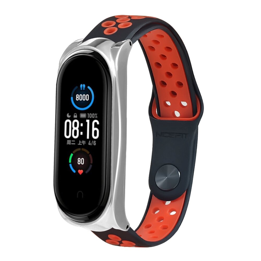 Bakeey coque en metal Silicone Double couleur trou d’air montre intelligente inversee Bande bracelet de remplacement pour Xiaomi Mi Bande 5 Non original – Bleu