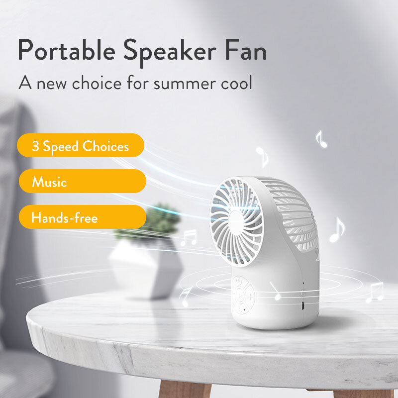 Bakeey F8 Haut-parleur de bureau sans fil Bluetooth 5.1 portable 2 en 1 avec mini ventilateur de refroidissement portable – Blanc