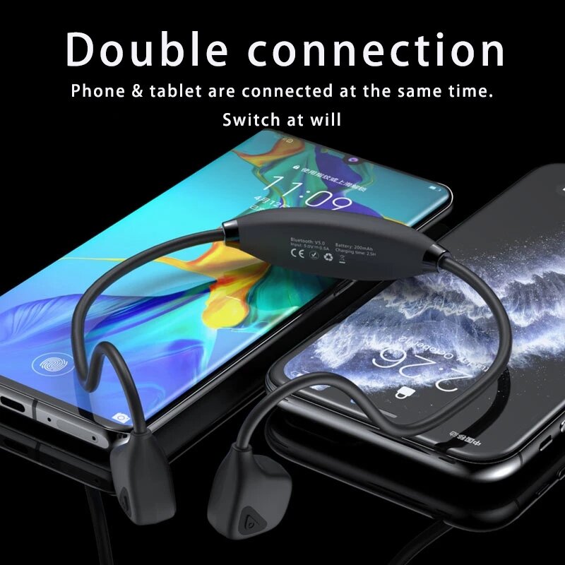 Features:Bone Conduction Design:The sound transmits through the bone to the auditory nerve, no need to put into ear, no eardrum damage, good for the user to avoid ear disease and hearing losing.Keeping Danger Away:Release your ears to listen to the world, you can respond to the surrounding situation quickly, far away from danger.Born for Sports:IP55 Sweat-resistant and 33g light-weight design immerse you in sports and music, suitable for walking, hiking, running, climbing, skating, driving, and other activities.BT 5.0 Connection:BT 5.0 ensures high data transfer speed, stable connection, and low power consumption. Free to enjoy hands-free calls or BT music via BT connection.Long Battery Life:200mAh rechargeable Lithium battery provides up to 6 hours of playback time on one full charge and the standby time can last to 10 days.Specifications:Model Number: H13BT Version: 5.0Operation range: Up to 15 meters (no obstacle)Frequency Range: 80-20KHzMic Sensitivity: -42±2dBImpedance: 8?Waterproof: IP56Battery Capacity: 200mAhMusic Playing Time: up to 6 hours (depends on music volume)Standby Time: 10 daysCharging Time: about 2.5 hoursCharging Port: Type-CColor: BlackMain Item Size: Approx. 14.8*11.8*3.6cm/5.82*4.64*1.41inMain Item Weight: 33g/1.16ozPackage Size: 17.4*13.8*4.3cm/6.85*5.43*1.69inPackage Weight: 145g/5.12oz