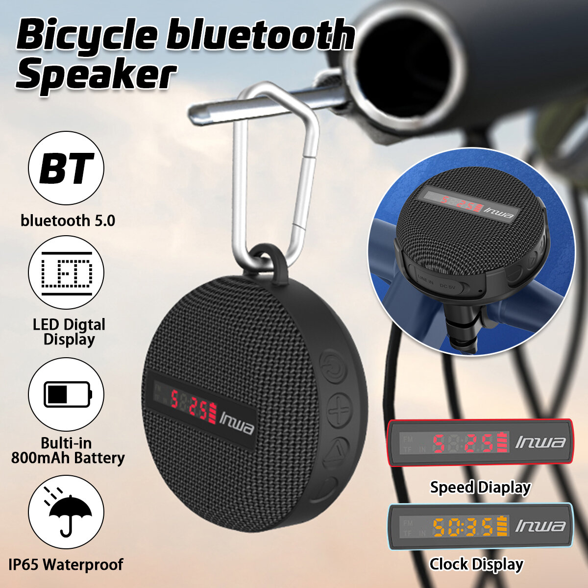 Bakeey haut-parleur bluetooth LED vitesse affichage numerique sans fil HIFI haut-parleurs de velo etanches exterieurs