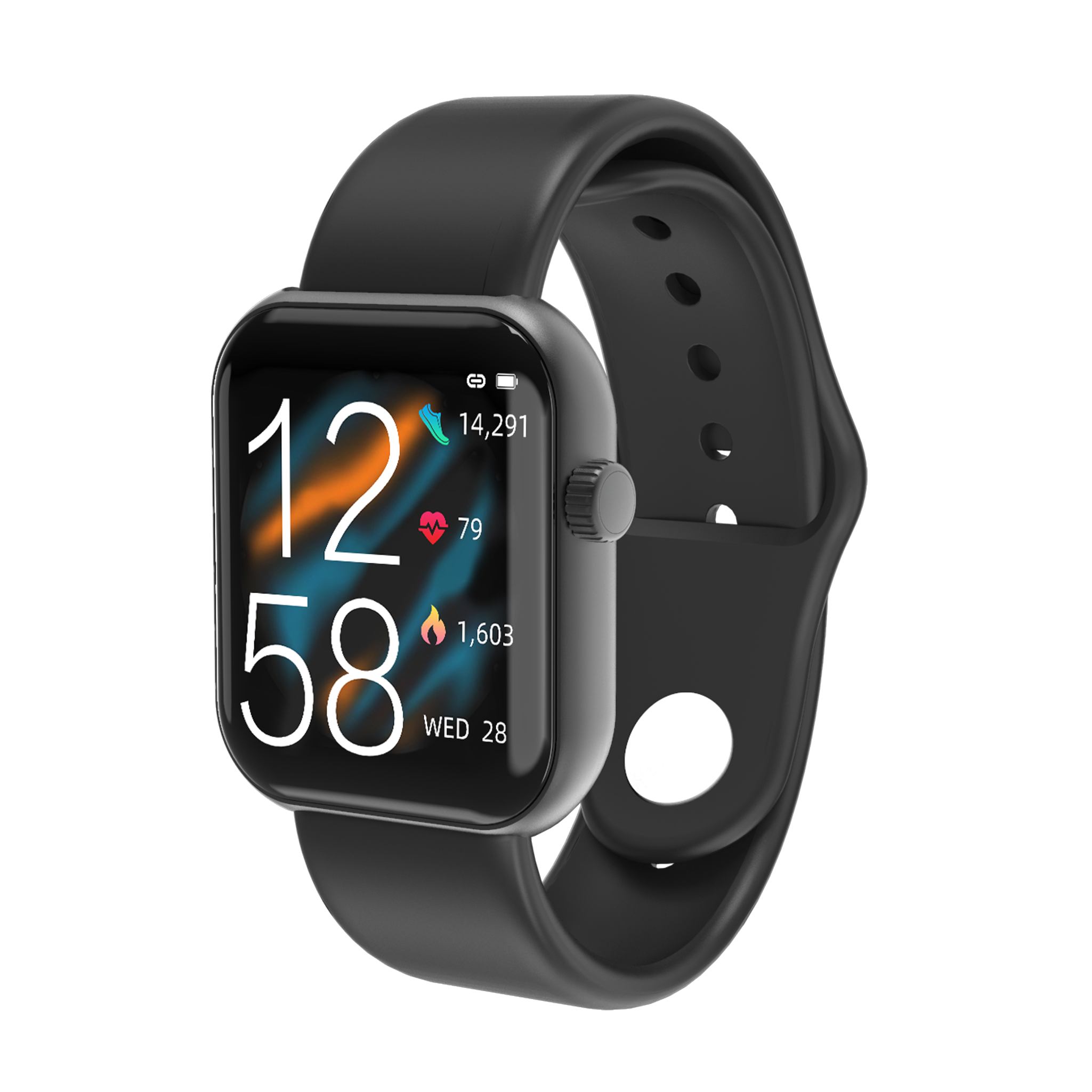 Bakeey i8 1,4 pouces 2.5D Ultra incurve ecran tactile complet frequence cardiaque moniteur de pression d’oxygene dans le sang IP67 montre intelligente etanche – Noir