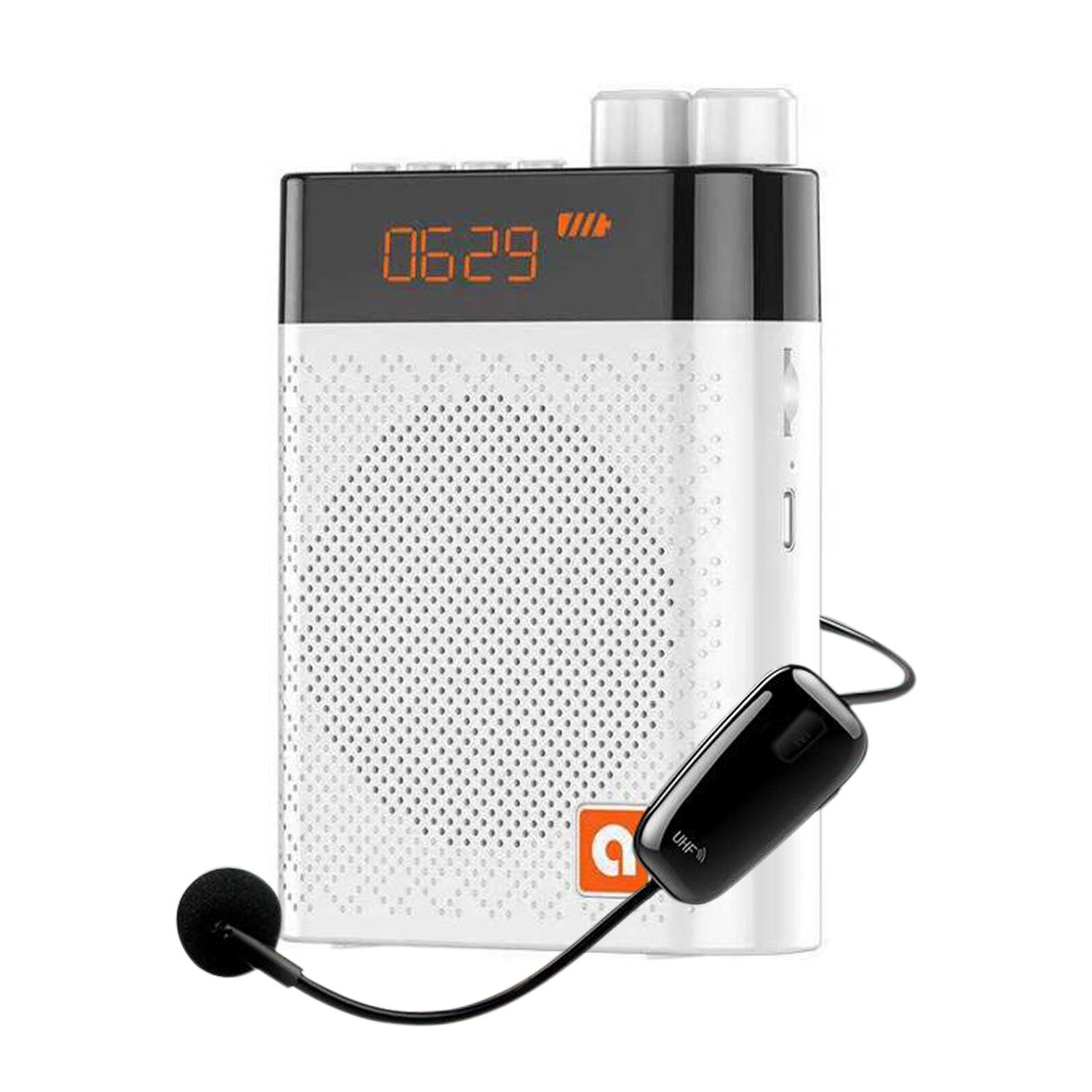 L'amplificateur vocal portable est equipe d'un micro-casque sans fil. La technologie de transmission sans fil UHF peut realiser une connexion sans fil stable de 20 m / 65 pieds dans une zone ouverte. Le casque sans fil UHF rend votre voix plus forte et plus claire lorsque vous vous promenez dans la piece. Sortie Super 5W, le son couvre une superficie de 10000 pieds carres (1000 metres carres), parfait pour 20 e 100 personnes. Convient aux pieces moyennes ou petites.