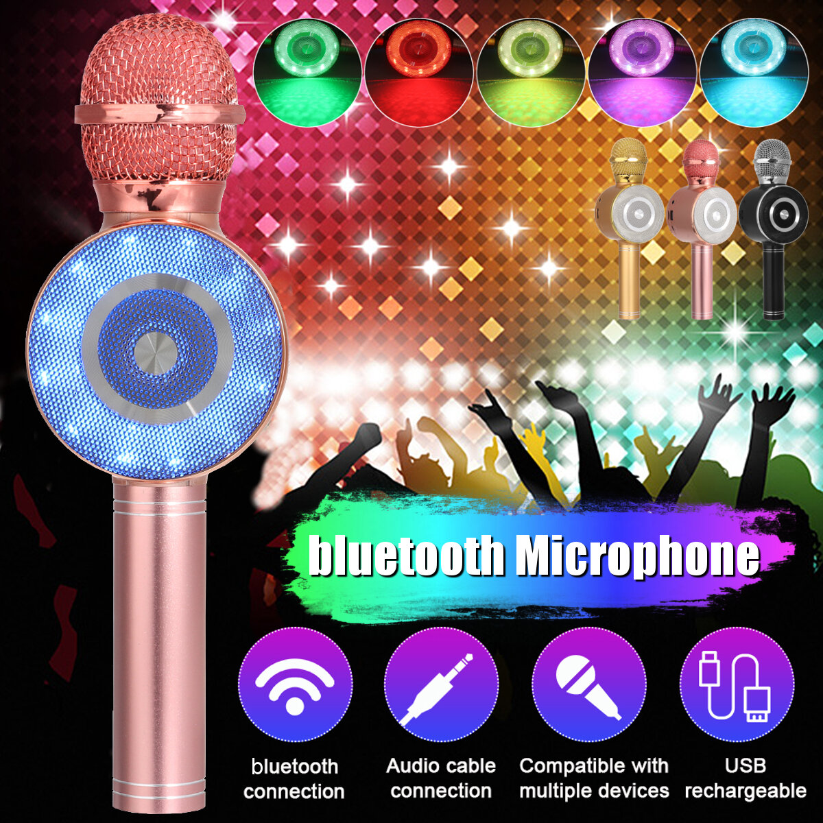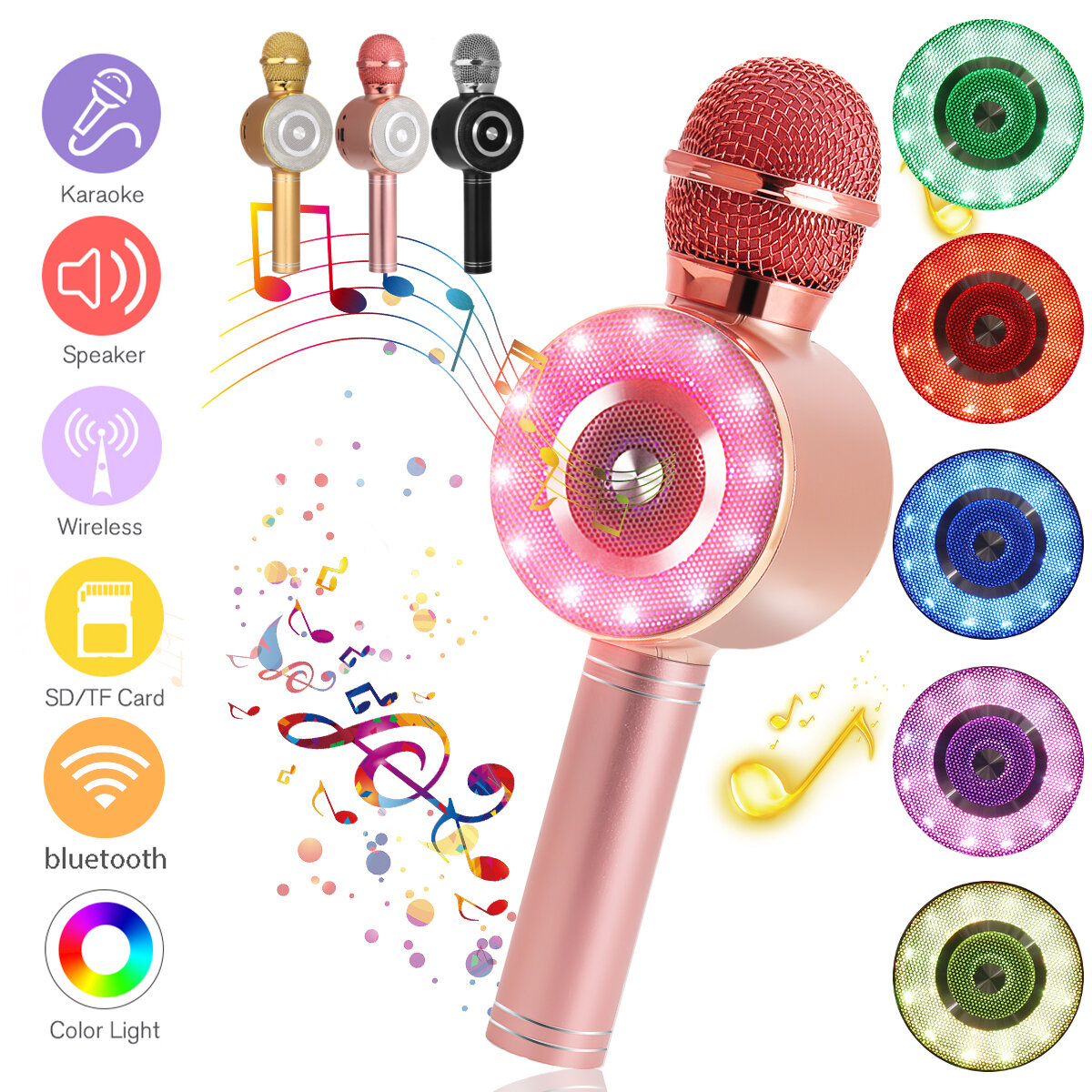 . Caracteristiques: - Microphone chantant de qualite sonore superieure Processeur audio professionnel et systeme de reglage, et il dispose d'un filtre e 3 couches pour eviter les craquements ou les eclats, creant un environnement sonore en direct KTV etonnant et une reverberation merveilleuse. - Microphone bluetooth karaoke 3 en 1 Il peut etre utilise comme haut-parleur Bluetooth, lecteur et enregistreur. couplage plus rapide et compatibilite universelle. - Connexion e 3 voies connexion Bluetooth, connexion USB par ceble et connexion par carte TF. Le bluetooth a une distance de connexion (10m). Carte 32GB TF hautement compatible. - Longue duree de jeu Ce microphone sans fil karaoke peut durer plus de 6 e 10 heures apres une charge complete. Que ce soit e la maison ou e l'exterieur, ne vous inquietez pas, la batterie ne suffit pas. - Vous apporter plus de plaisir Equipe de lumieres LED, 7 lumieres respirantes dynamiques colorees, ajoutant une atmosphere e vos chants et fetes! Microphone professionnel, haut-parleur Bluetooth, sonnerie KTV, sonnerie de fete, chant familial. Un cadeau unique pour les enfants et les adultes. Caracteristiques: Nom du produit: Microphone sans fil HIFI haut-parleur Modele: 669 Puissance de sortie: 5 W Puissance de charge: DC5V Niveau de pression acoustique maximum:> 115DB 1KHZ TDH