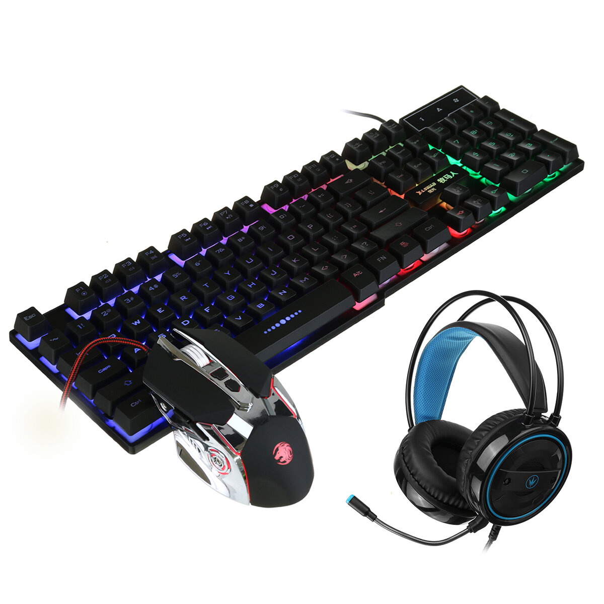 Bakeey Mice Claviers Casque Combo Clavier filaire etanche mecanique retroeclaire e 104 touches G5 Souris filaire 800DPI 7.1 Son stereo 3.5MM USB Casque E-Sports avec micro RGB Ensemble de jeu lumineux – re