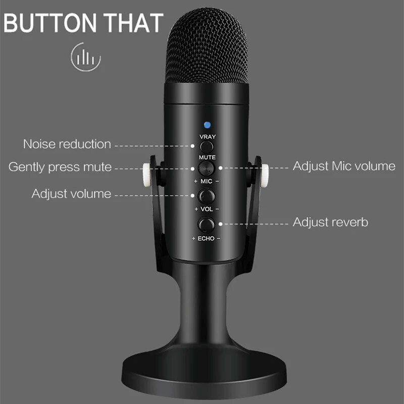 Bouton de sourdine physique pour reduire le taux de dysfonctionnement en evitant de toucher par inadvertance, reponse instantanee par declenchement, est utile lorsqu'une situation d'urgence comme la toux ou le reniflement se produit. Motif de prise de vue Cardiod pour se rapprocher un peu plus de la source sonore contre laquelle elle fait face et capturer la partie la plus douce de la vibration