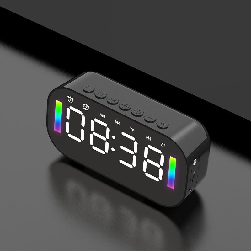 Bakeey Q3 Haut-parleur Bluetooth sans fil Mini LED Reveil Radio FM Carte TF Barre de son AUX Subwoofer avec telephone Hoder – Noir