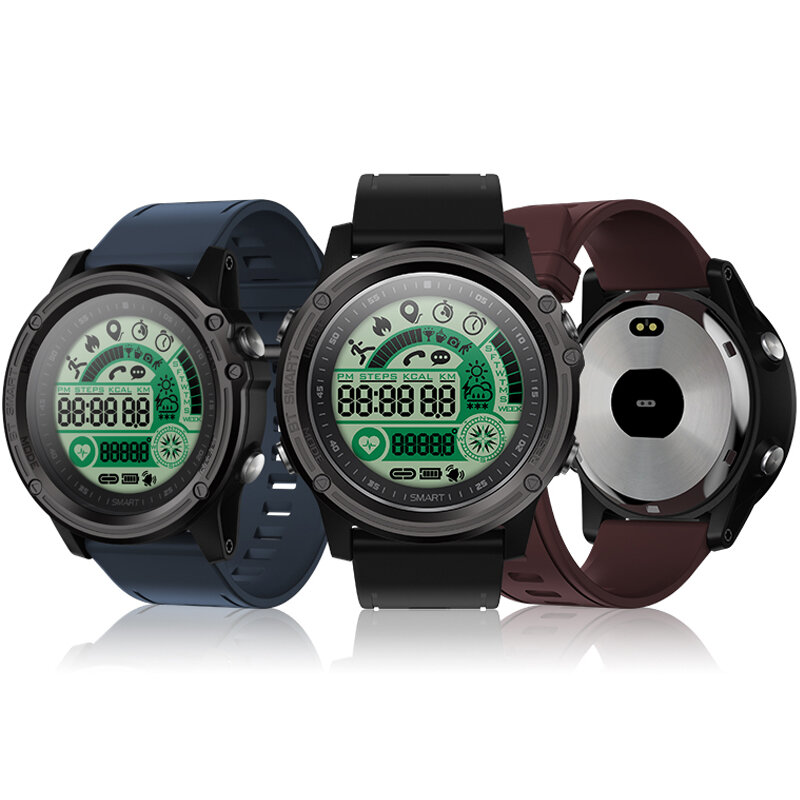 Bakeey S28 1.21 pouces Plein ecran Tactile Sport Tracker Moniteur de Frequence Cardiaque Boussole Appel SMS Rappel Telecommande 3ATM etanche Montre Intelligente – Bleu