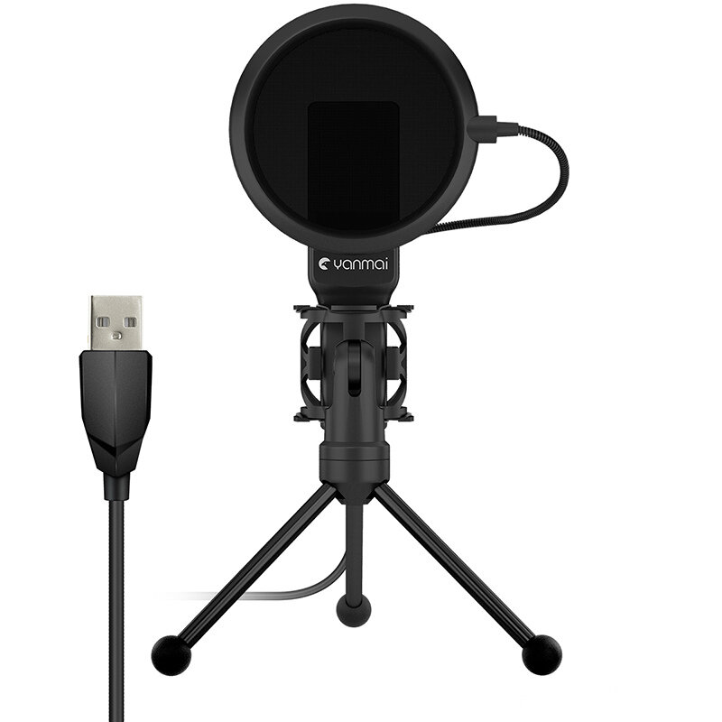 Bakeey SF-777 micro USB de bureau condensateur d’ordinateur de jeu avec support pliant filtre trepied pour microphone d’enregistrement video PC – Noir