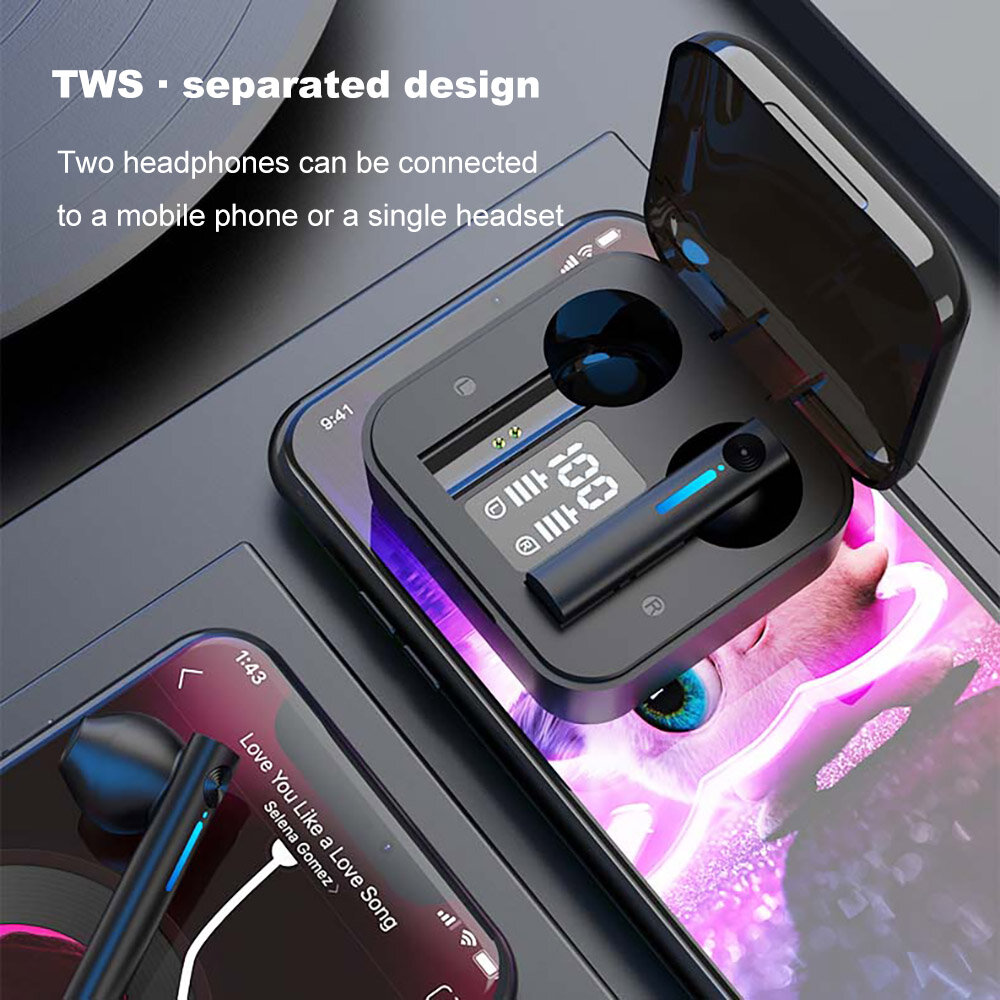Bakeey T13 TWS bluetooth 5.0 ecouteurs tactile bluetooth basse profonde ecouteurs casque LED indicateur numerique casque avec micro – Noir