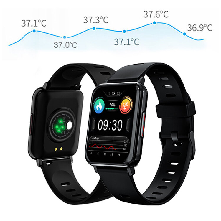 Bakeey T8 1.69 pouces ecran tactile BT5.0 24h moniteur de frequence cardiaque pression arterielle oxygene temperature corporelle mesure bracelet bricolage montre visages montre intelligente – Noir
