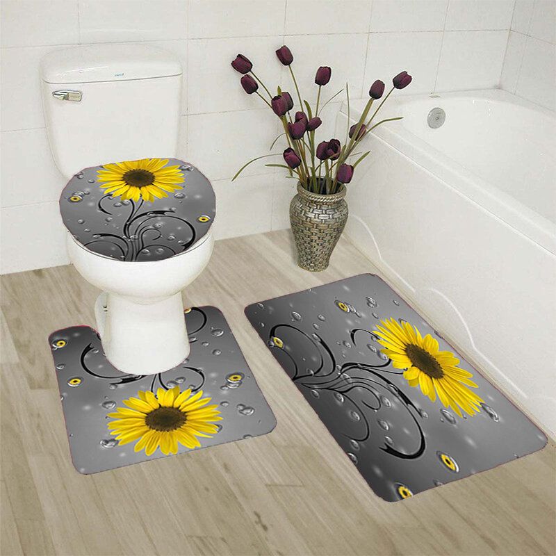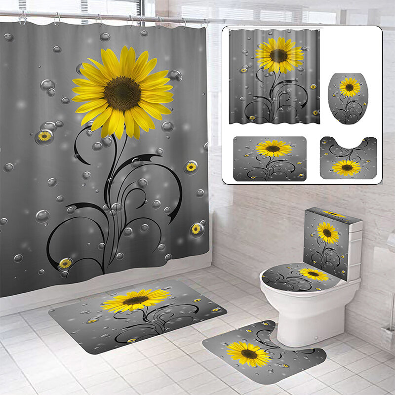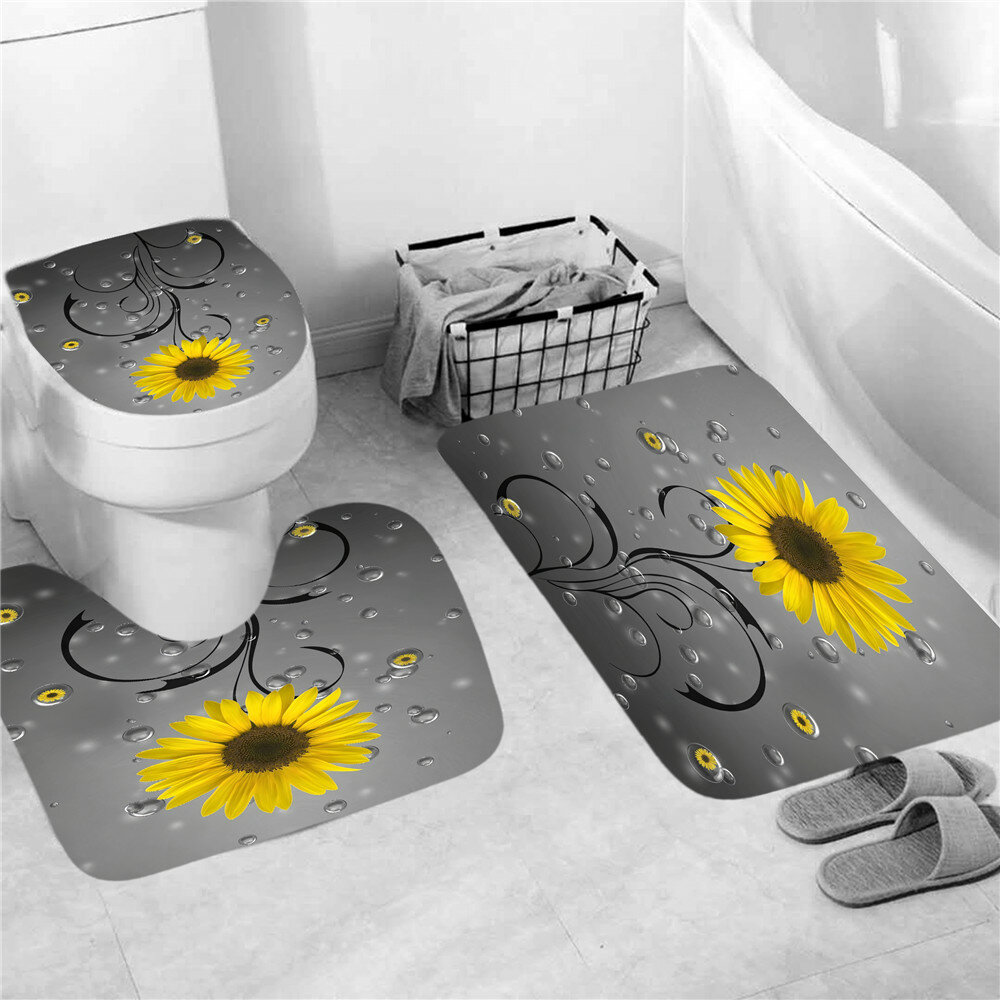 Bakeey Tissu Rideau De Douche Impermeable Ensemble De Rideaux De Salle De Bains Tapis Antiderapant Couvercle De Couvercle De Toilette Et Tapis De Bain – Ensemble de 3 pieces