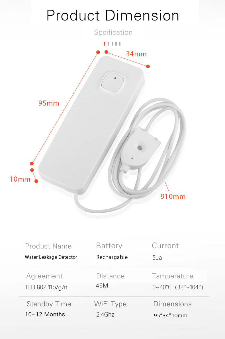 Bakeey Tuya WiFi maison intelligente capteur de fuite d’eau Rechargeable APP Notification detecteur de niveau d’eau alarme maison telecommande