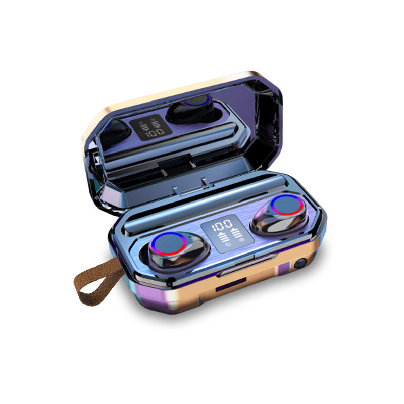 . Fonctionnalites: 1.Avec le boetier de charge 1200mAh, peut etre utilise comme lampe de poche. Peut automatiquement se coupler, allumer apres avoir sorti du boetier de charge. 2. stereo sans fil, separation des canaux gauche et droit, les deux oreilles peuvent etre utilisees separement ecouter la chanson confortablement, soutenir les chansons et appeler. La capacite 3.Power montrera sur votre telephone, vous pouvez voir la situation de puissance e tout moment, ne vous inquietez pas de l'electricite, faites votre vie sans souci; 4. casque Bluetooth connecte au telephone apres l'arret, puis ouvrez le casque Bluetooth se connectera automatiquement au telephone, plus pratique; 5. compatibilite intelligente: prise en charge de tous les telephones mobiles Bluetooth 5.0, tablettes, ordinateurs portables, chant, musique QQ, films, etc., tous les telephones mobiles universels Caracteristiques: Connexion sans fil: bluetooth 5.0 frequence du casque Bluetooth: AAC / SBC distance de transmission bluetooth:> 10 m Taille du casque: 20x25mm Taille du boetier de chargement: 83x50mm Capacite de la batterie du casque: 50mAh Capacite du boetier de charge de la batterie: 1200mAh Temps de charge du casque: environ 1h Temps de conversation du casque: 4-5h Temps de lecture de la musique: 4-5h Poids: 120g Emballage inclus: 1 x jeu d'ecouteurs 1 x etui de chargement