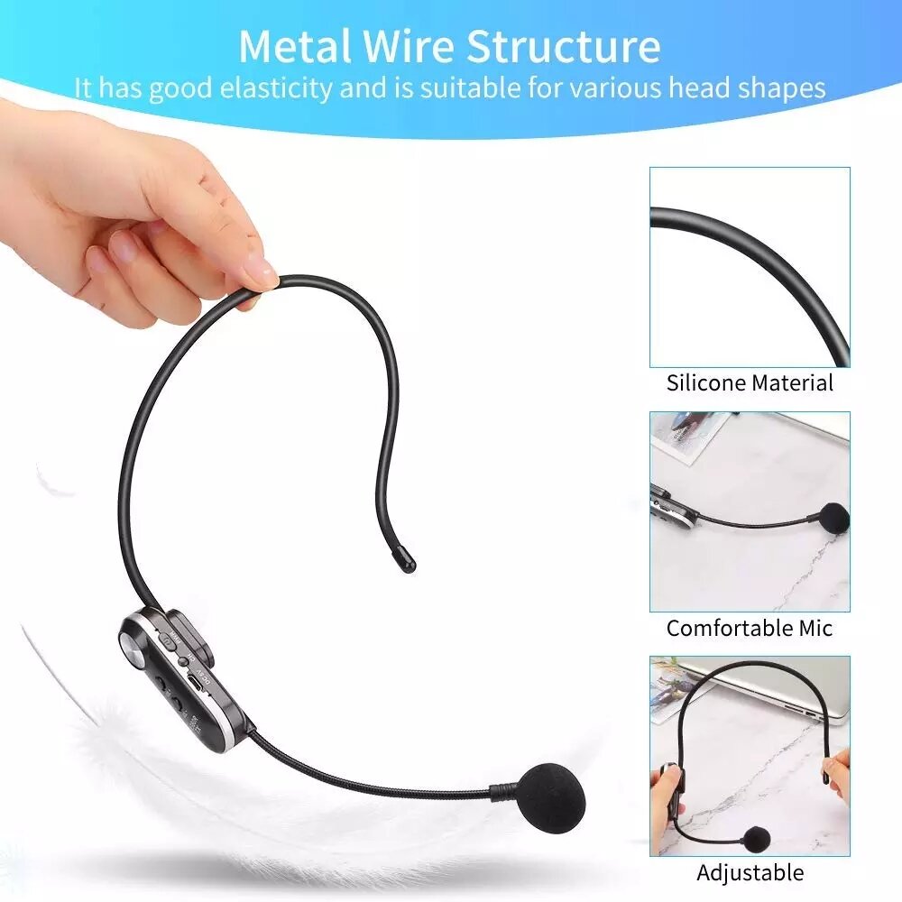 Bakeey UP-T17C Casque de microphone sans fil 50M UHF Systeme de micro de casque sans fil pour amplificateur de voix Haut-parleurs de scene Guides touristiques des enseignants – Noir