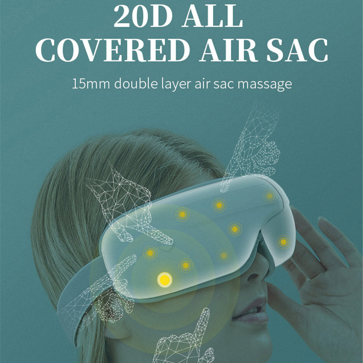Features:-20D all covered air sac, 15mm double layer air sac massage-42°C heating, like a hot tower on your eyes-Pleasant music, on/off as you wish, turn on with auto music, press twice to turn off-3 modes for your option-Quiet and undisturbing-Soft and comfortable material, easy to clean-180° foldable design, portable and convenience- Charge once, use 10-20 timesSpecifications: Name: Eye massager Style: Three OptionsColor: Black, WhiteRated voltage: DC-5VRated power: 4.5WBattery: 750mAhCharge way: 15mins-USB chargeFunction: Air sac massage,heating,music