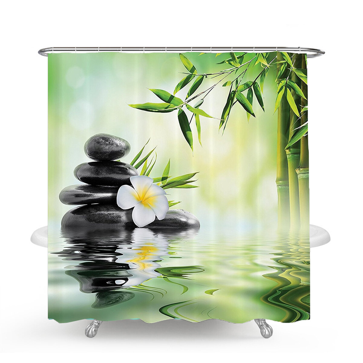 Bamboo Printing Waterproof Bathroom Shower Curtain Toilet Cover Mat Non-slip Carpet – .A