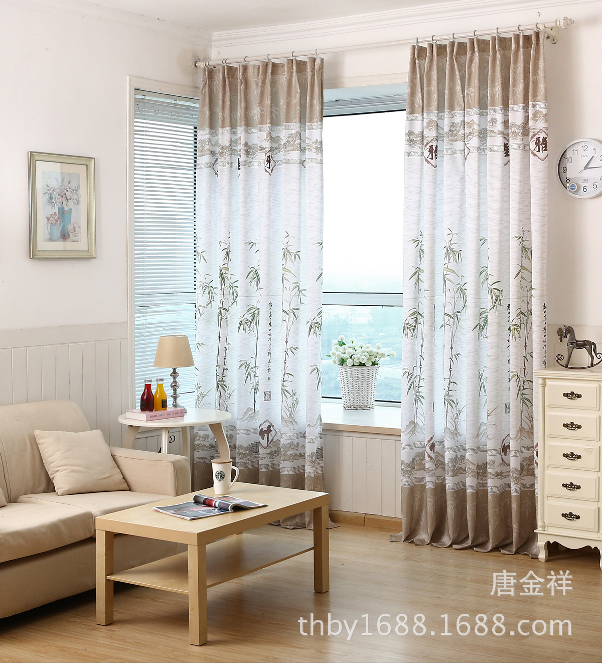 Bamboo Printing Window Curtain Half Shading Tulle for Bedroom Living Room Balcony Decor As shown_1.4m wide * 2.4m high