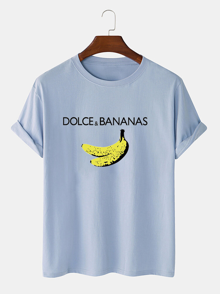 Description:Fit Type:Loose FitMaterial:CottonNeckline:Round NeckPattern Type:Letter,Fruit&VegetableScene:Leisure,Home,CasualSeason:SummerSize:M,L,S,XLSleeve:Short SleeveStyle:Casual,Simple