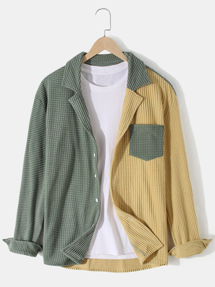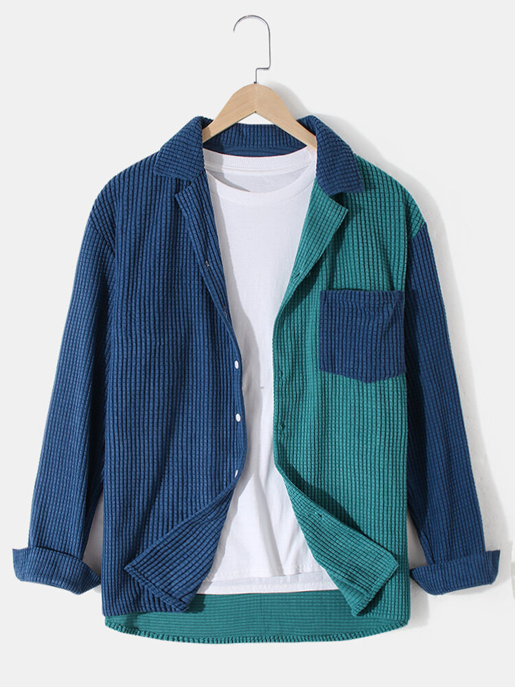 Banggood Design Mens Patchwork Corduroy Revere Collar Long Sleeve Shirts With Pocket – Green S
