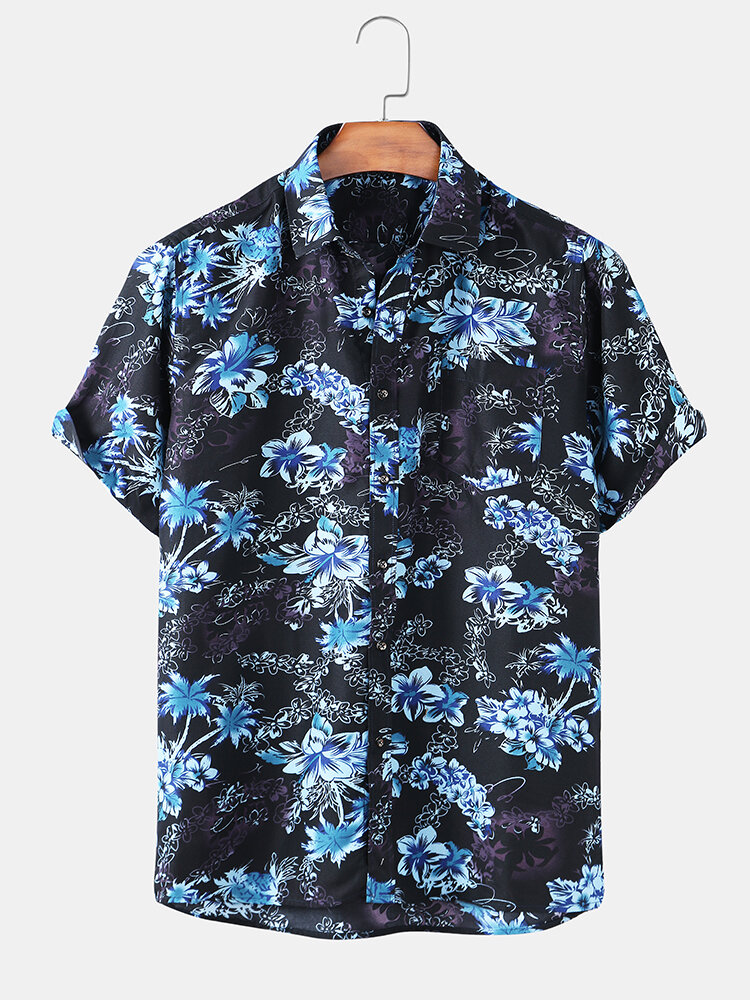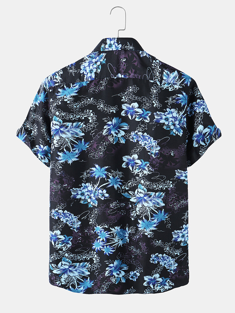 Banggood Special Offers Casual Tropical Floral Print Turn Down Colalr Short Sleeve Shirts – Dark Blue M