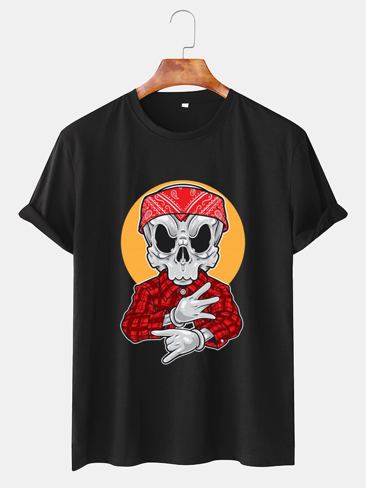 Banggood Special Offers Cotton Cartoon Skull Print Crew Neck Short Sleeve T-Shirts – Black S