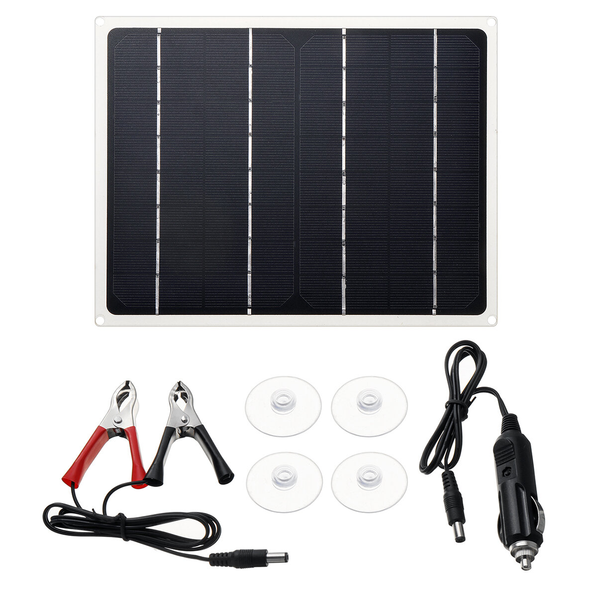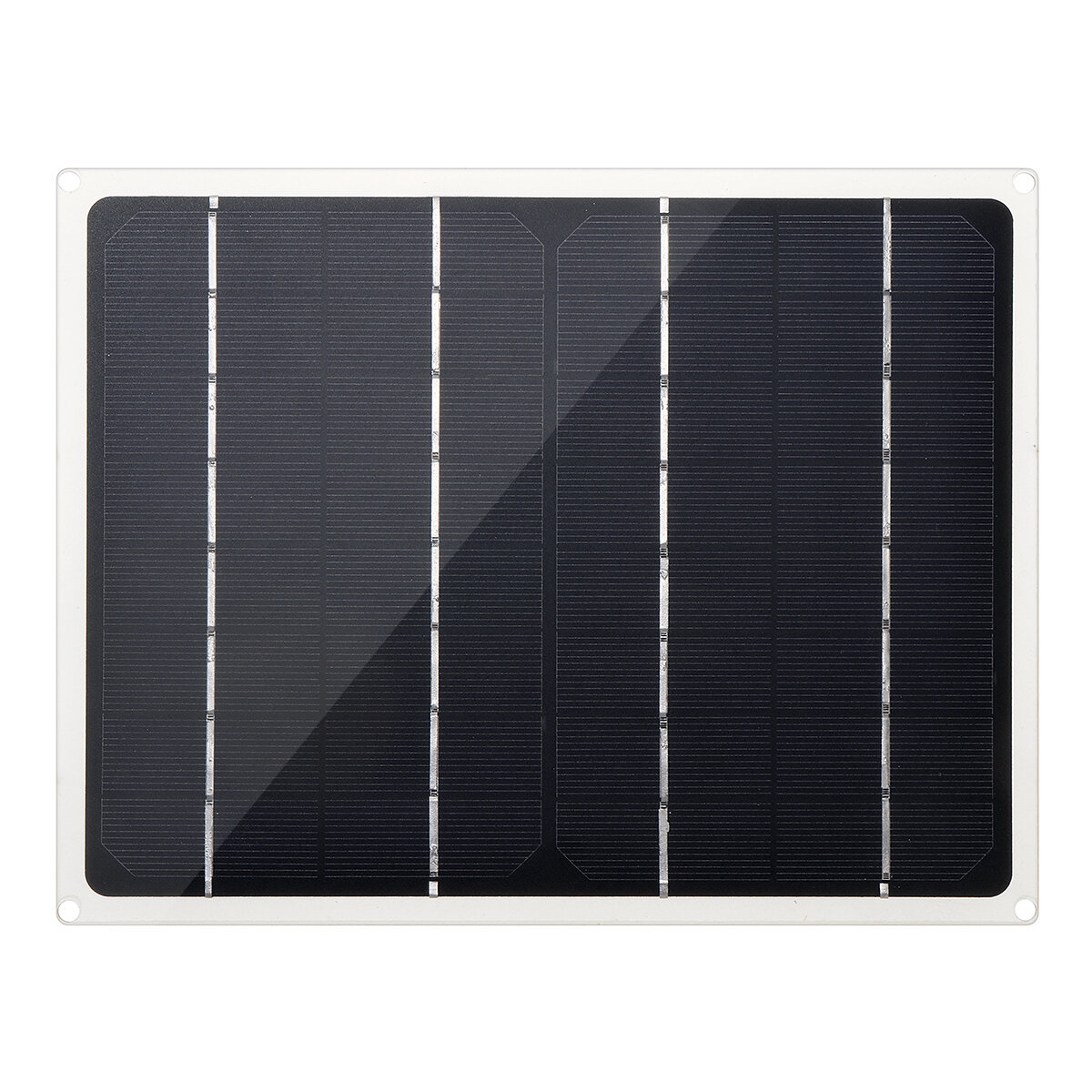 . Fonctionnalite: - Convient aux campeurs, bateaux, maisons, jardins, cabanes ou fermes - Fournir une alimentation appropriee pour les televiseurs, les ordinateurs portables, les lumieres, les refrigerateurs et autres equipements d'exploitation. - Carte flexible, legere et facile e installer. - Convient aux vehicules recreatifs, aux bateaux, aux petits espaces ou aux zones bondees. Specification: Materiel: silicium monocristallin Taille: 240x185x3.0mm / 9.45x7.28x0.12in Puissance: 10 W Tension de circuit ouvert: 18 V Courant de court-circuit: 2A Tension de sortie: DC 18V & 9V, USB 5V, Type-C 5V Grade etanche: IP65 Conversion: 23 e 24% Applicable e: velo, alpinisme, randonnee, camping, tourisme, etc. Emballage inclus: 1 x panneau solaire 1 x pince crocodile 1 x chargeur de voiture 4 x ventouse