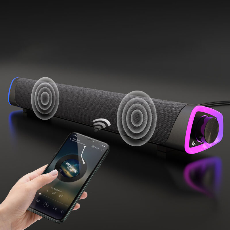 Barre de son surround 3D bluetooth 5.0 haut-parleur haut-parleurs d’ordinateur filaire barre de son subwoofer stereo pour ordinateur portable PC theetre TV Aux 3.5mm – Noir