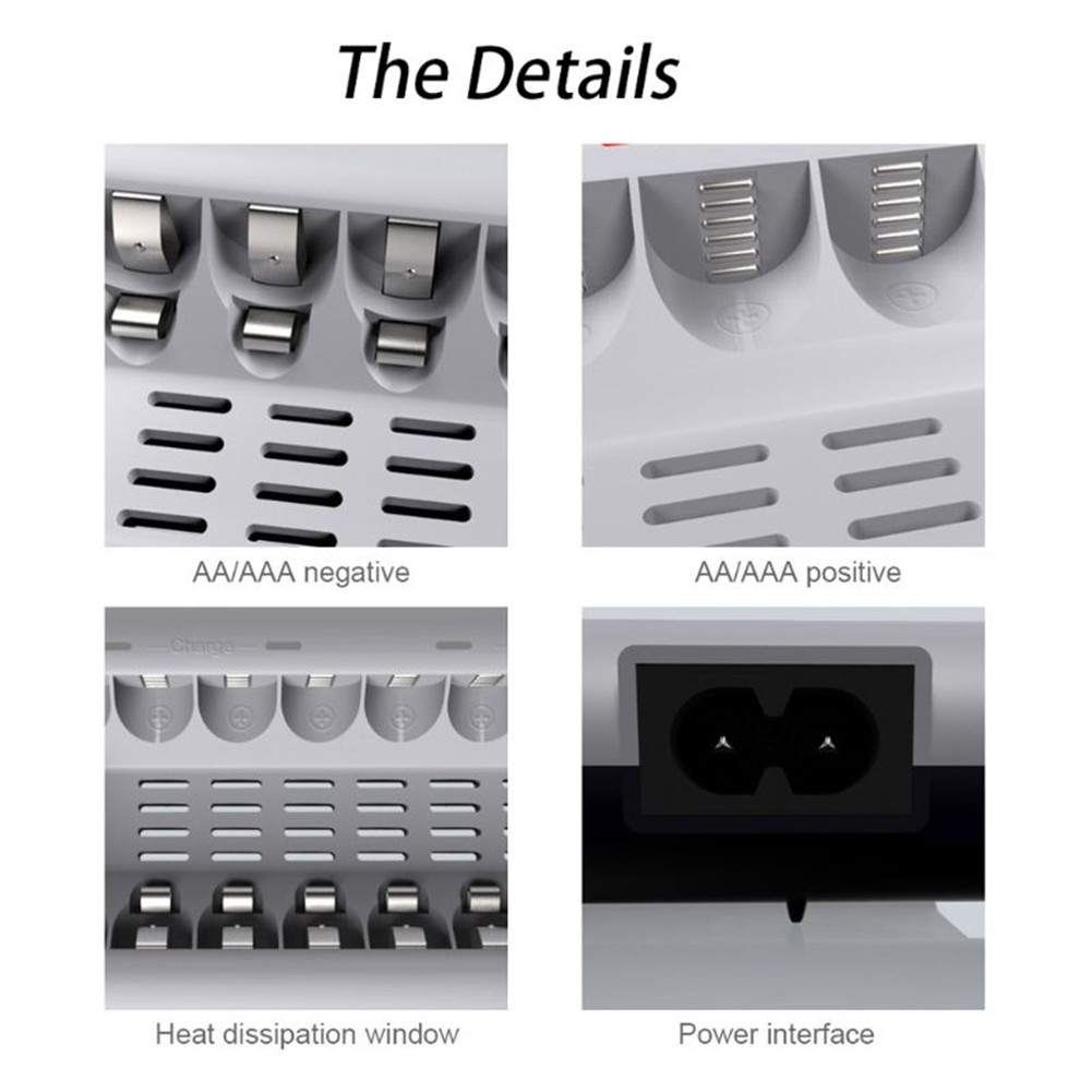 Battery Charger 8 Slots Smart Intelligent Fast Charging Device with LED Display for AA/AAA Ni-MH/Ni-Cd Rechargeable