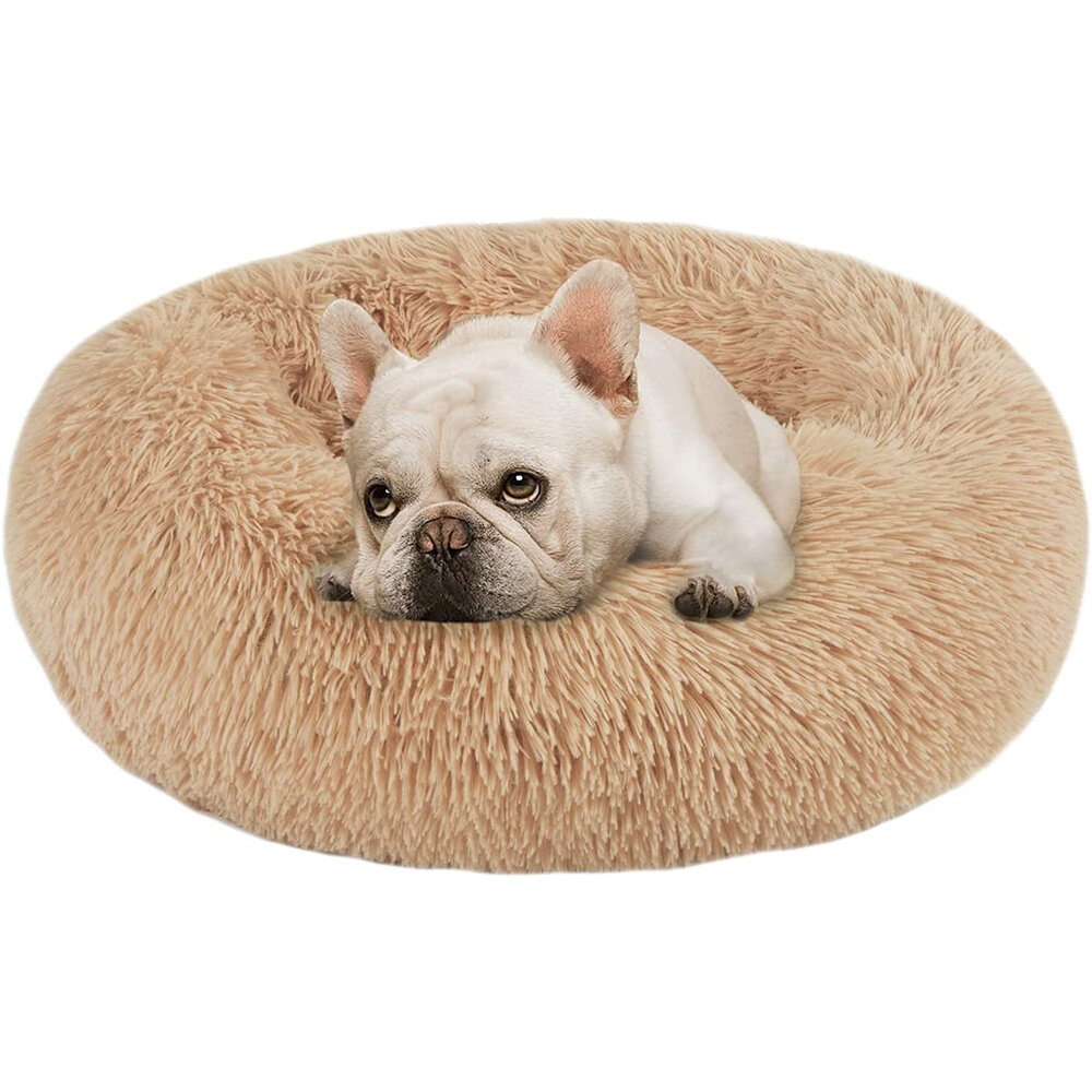 - Support Premium SleepCircular design donut dog bed is ideal for pets who like to curl up. The raised edges create a sense of security and provides excellent support for the head and neck and relieves joint and muscle pain.- Super Warm PlushCat bed is filled with air loft fibers. Ultra-fine Microfiber is ideal for cats to resist the cold. Luxury cat bed is reminiscent of a warm hug.- Non-slip BottomPet bed hasdesigned with a non-slip bottom, which can be easily fixed on the tile and hardwood floor of the home. Our pet bed can be seamlessly added to the decoration of any room.- Appropriate Size40/50/60/70cm round pet bed is perfect for small and medium-sized dogs/cats of any age no more than25/35/55/100pounds.- Machine WashablePlease machine wash the whole pet bed separately with cold water in a gentle cycle. Do not bleach. Tumble dry low. Please pat to make the dog bed completely fluffy before use.
