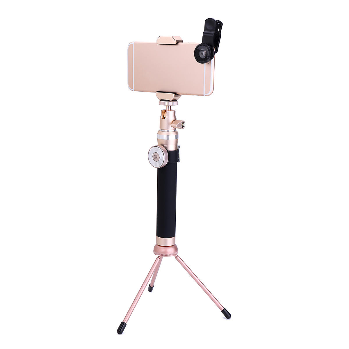 Beton extensible Selfie avec obturateur de bureau universel avec mini trepied de bureau Fisheye Lens Grand Angle Lens – Dore