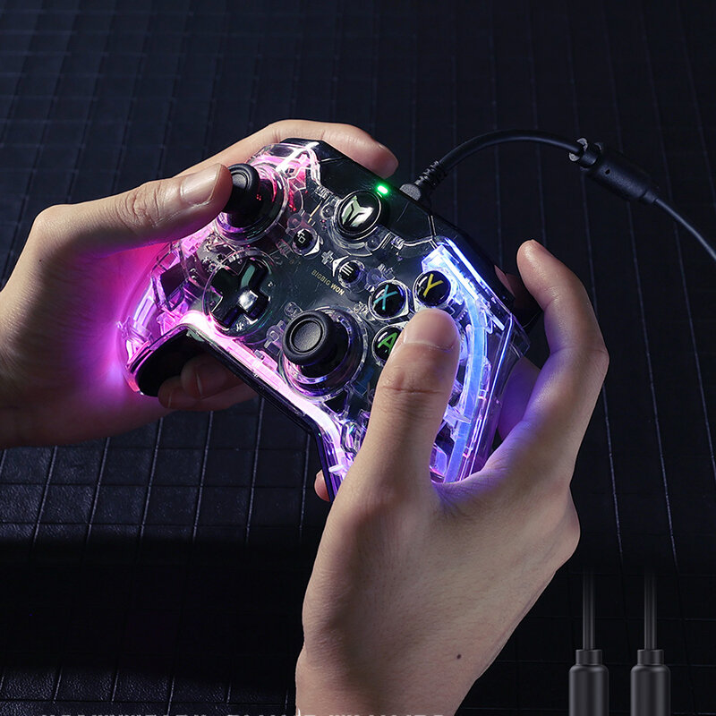 BIGBIG WON Rainbow C1 RGB Somatosensory Wired Gamepad Gamepad Manette de jeu pour Nintendo Switch PC pour PS4 PS5 Console de jeu avec R90 pour Xbox Switch Pro Sans delai Coque transparente – Type A
