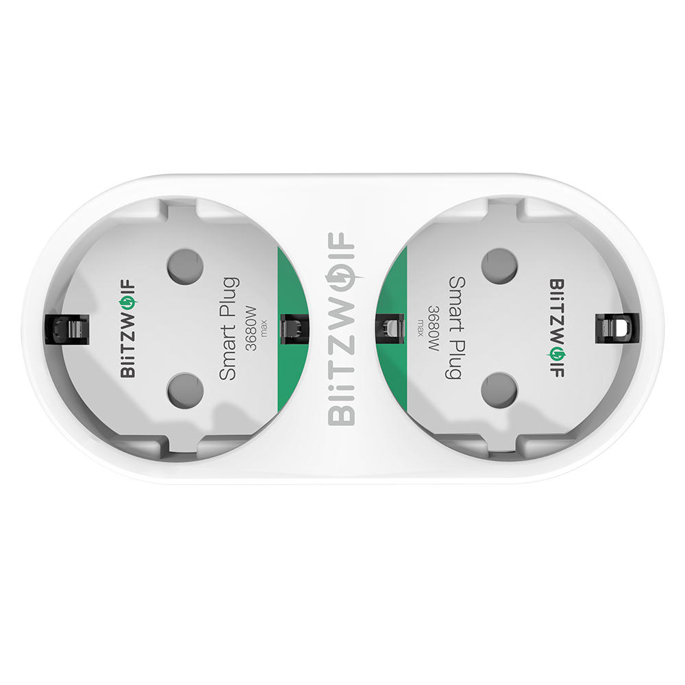 BlitzWolfe BW-SHP7 16A 2 EN 1 Double prise UE Prise WIFI intelligente Telecommande independante Statistiques sur l’electricite Interrupteur d’eclairage e domicile Minuterie