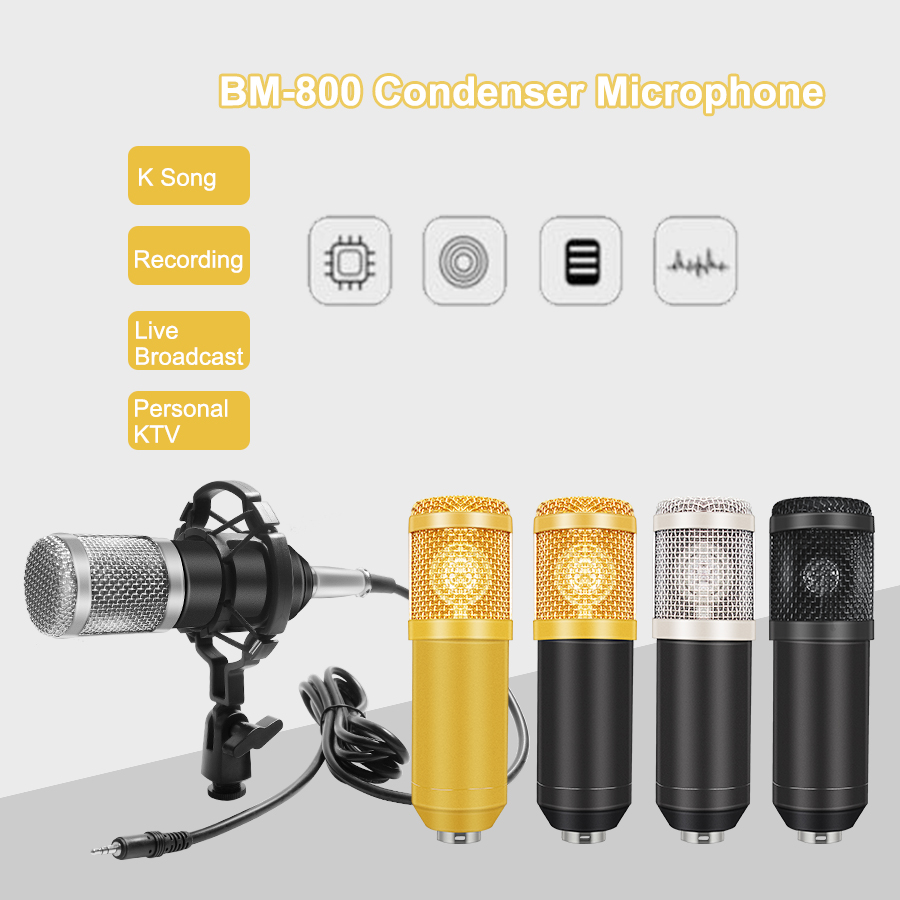 Bm800 Condenser Microphone Wire-controlled Noise Reduction Recording Mic For Mobile Phone Laptop Computer