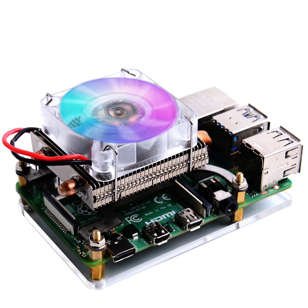 Boetier metallique de ventilateur de refroidissement de tour de glace e profil bas 52Pi 7 couleurs RGB changeant LED lumiere avec support pour Raspberry Pi 4 B/3B +/3B